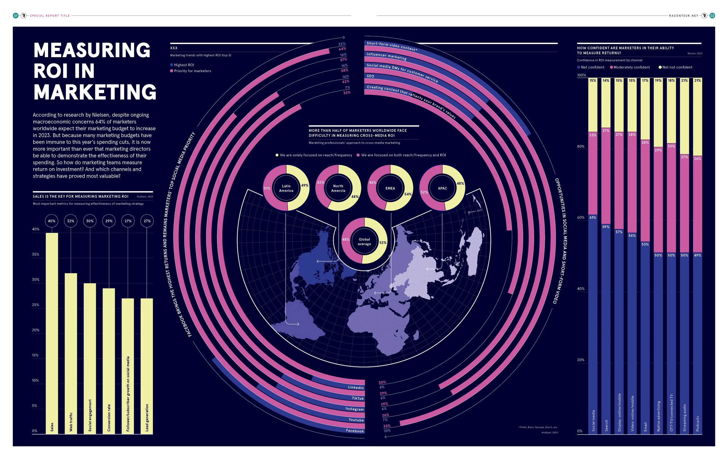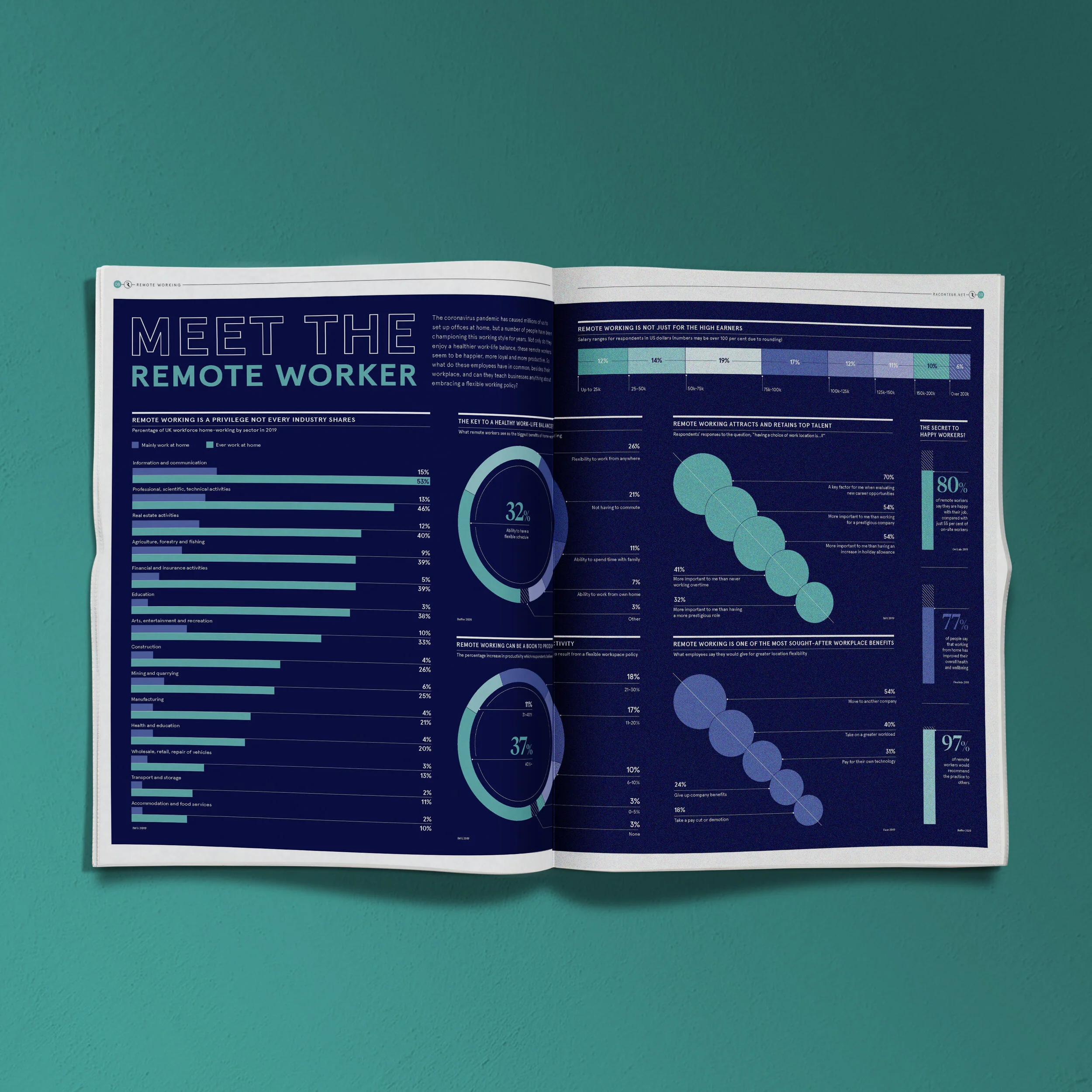 One of the staples of a Raconteur report is the designed infographic dashboard, in the centre of the paper. We are provided the raw data from our strategy team and from there it is up to us to turn that into an infographic spread.